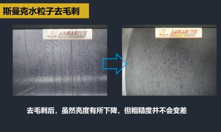 水粒子去毛刺后,閥體內(nèi)壁的亮度會下降,但其實粗糙度并沒有變差,反而一些刀紋還被去除了。