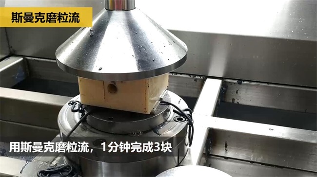 話不多說,老老實實列數(shù)據(jù),流體拋光機對該鋁合金閥塊類產(chǎn)品交叉孔去毛刺,1分鐘3個。