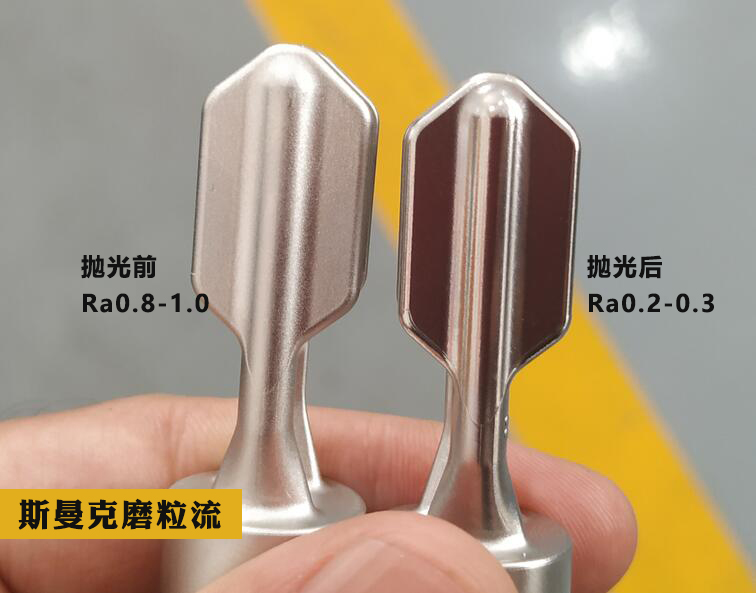 下圖工件拋光前粗糙度為Ra0.8-1.0,使用斯曼克磨粒流鏡面噴砂機(jī)拋光后,粗糙度直接下降到了Ra0.2-0.3。