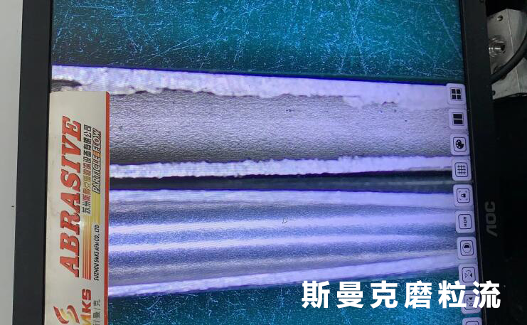 將無縫鋼管置于工裝內,流體拋光機拋光時間設置為3分鐘,一次裝夾8支,每支拋光時間不超過30秒。