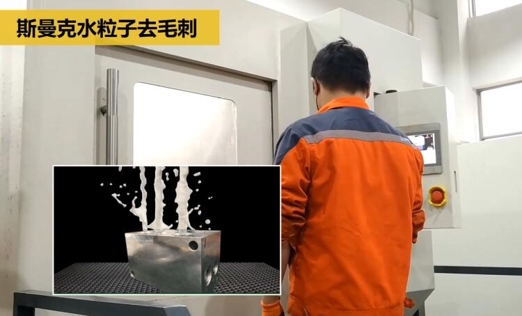 本次測評的閥體為不銹鋼材質,采用斯曼克水粒子去毛刺機進行測試。分別測試交叉孔去毛刺的效果、去毛刺后內(nèi)壁粗糙度是否有影響、去毛刺后對精度的影響以及效率等。