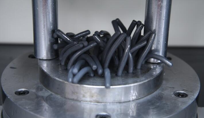 該模具上面有9個(gè)小孔,每個(gè)小孔孔徑約2mm,材質(zhì)為硬質(zhì)合金??妆容^淺,拋光起來沒什么難度,只是因?yàn)榭妆容^多,所以如果人工拋光,非常耗時(shí)。而使用斯曼克流體拋光機(jī),這樣一個(gè)模具只需要5分鐘就可以拋好。